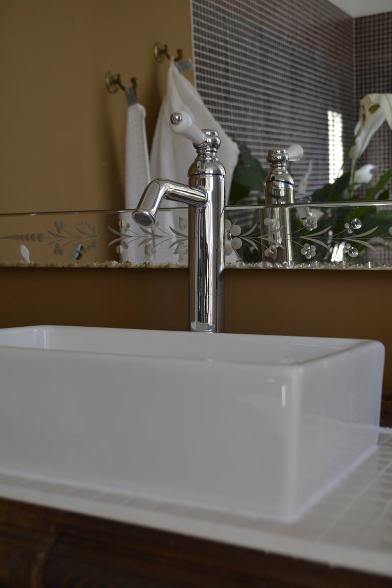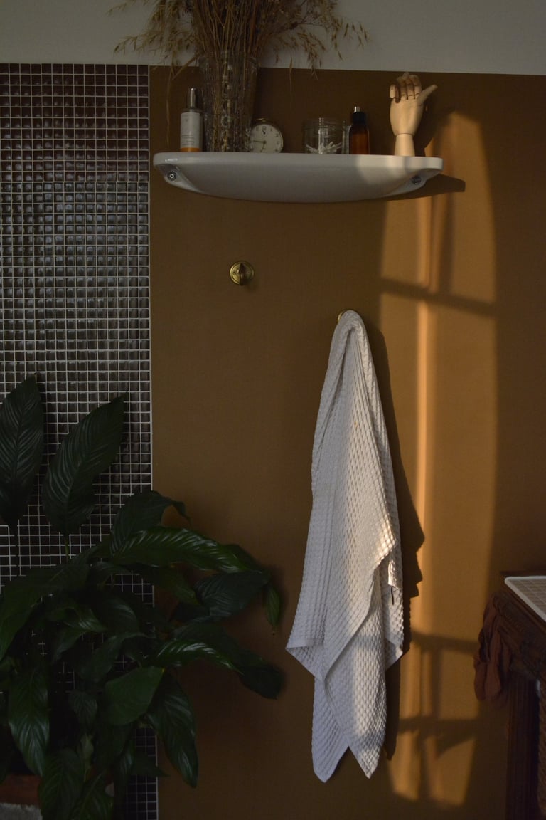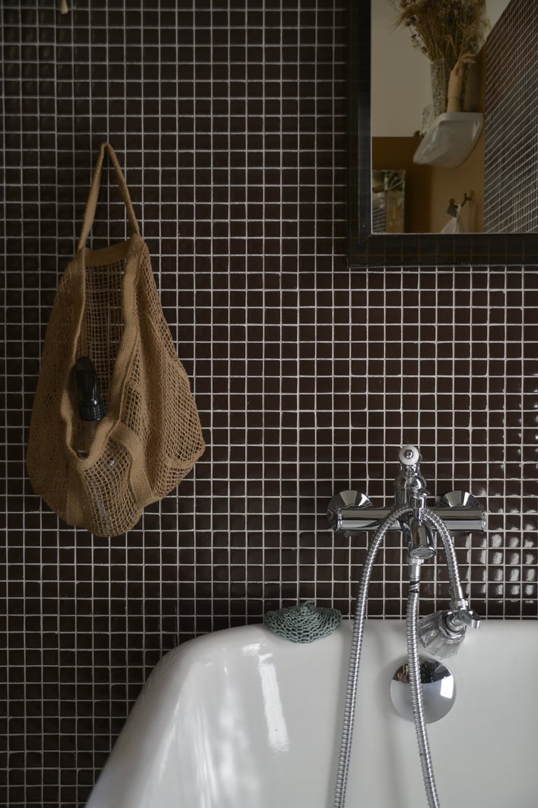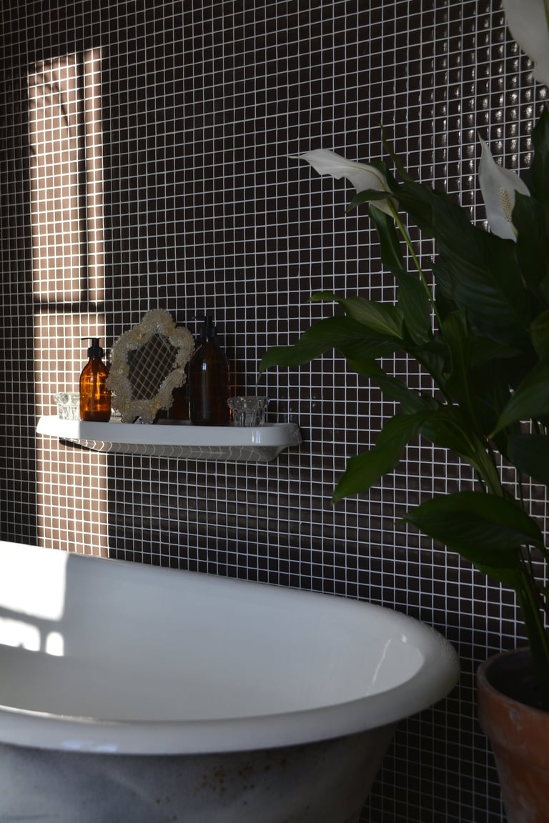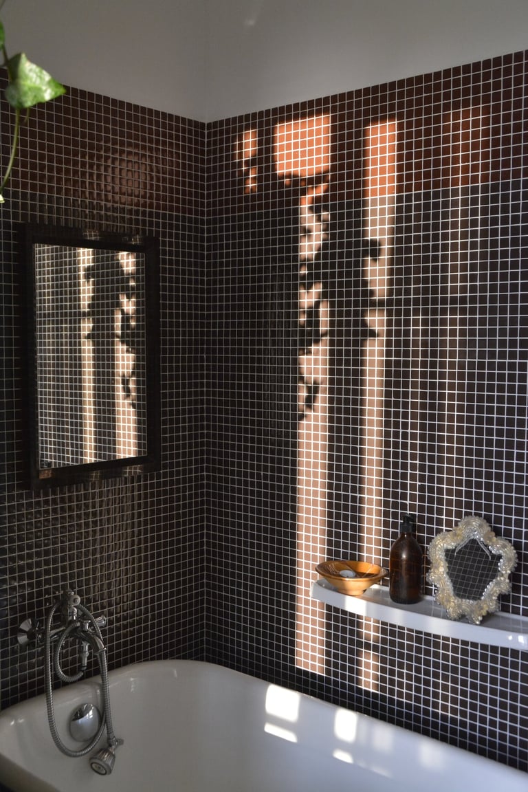 Tout a été chiné, du bac de douche à la baignoire, du meuble vasque aux miroirs.
